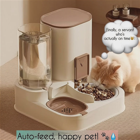 The ultimate solution for busy pet parents. This sleek, gravity-fed system ensures your furry friend stays nourished and hydrated with fresh water and kibble, even when you aren't home. No electricity, no stress—just a happy, healthy pet.